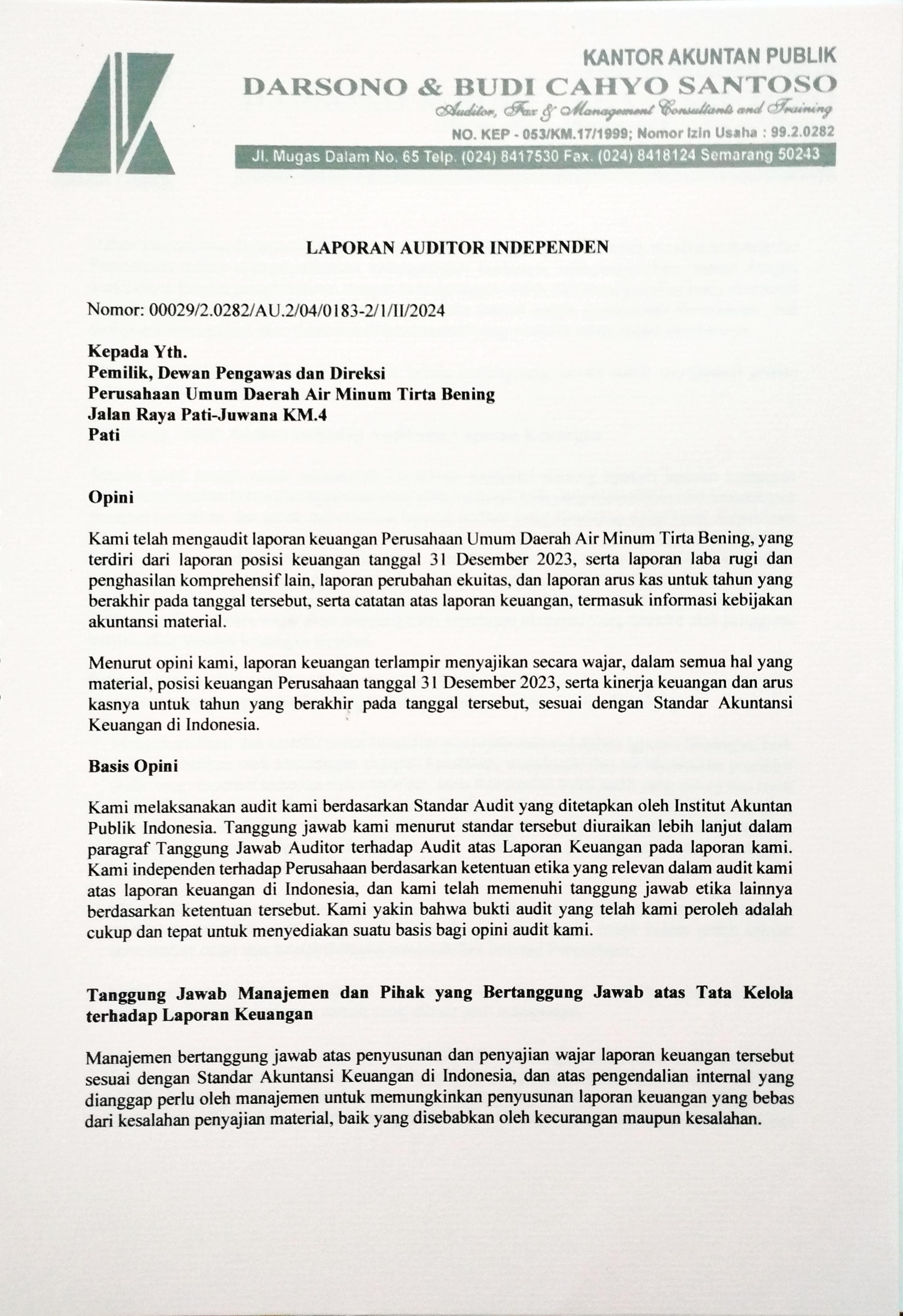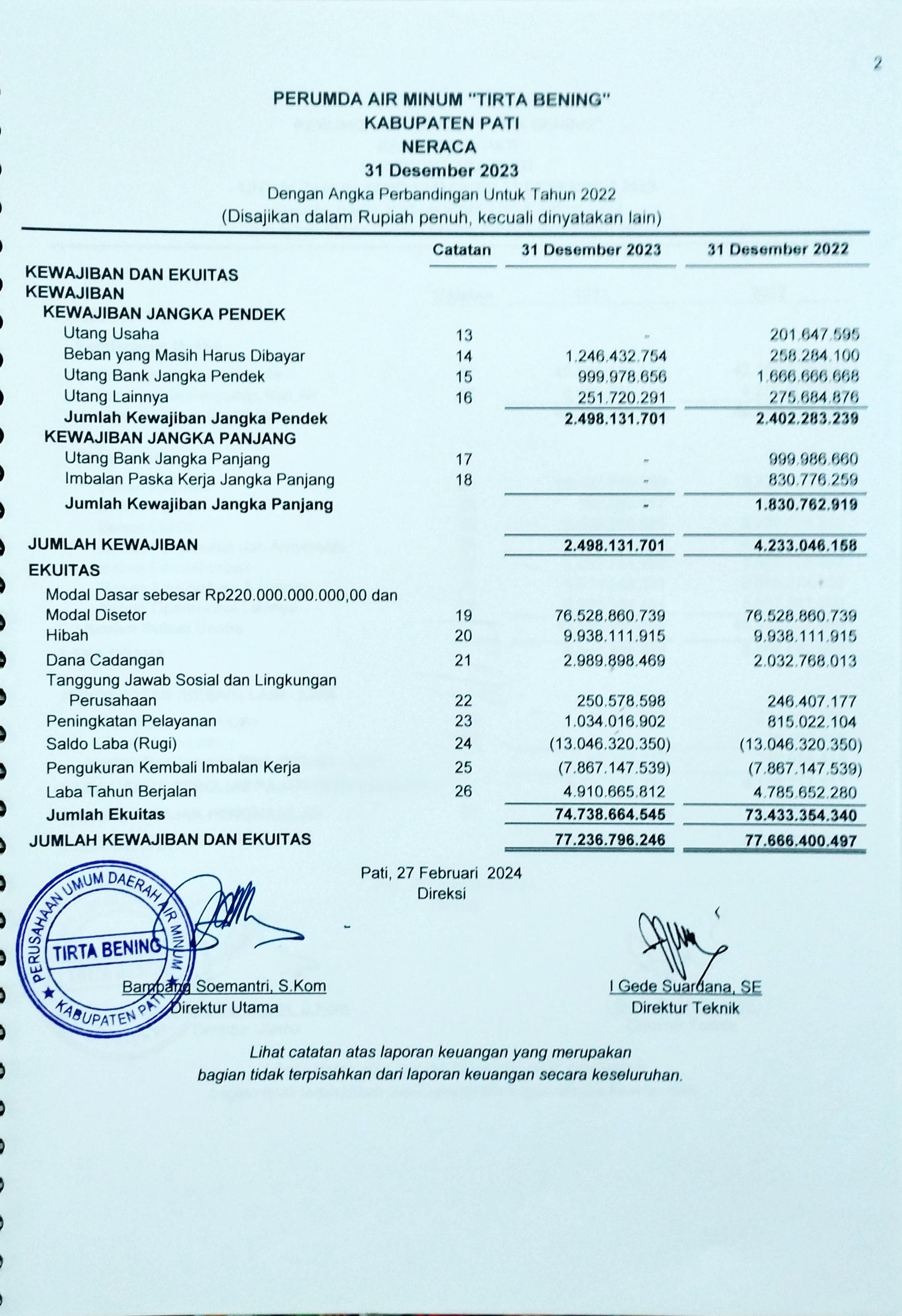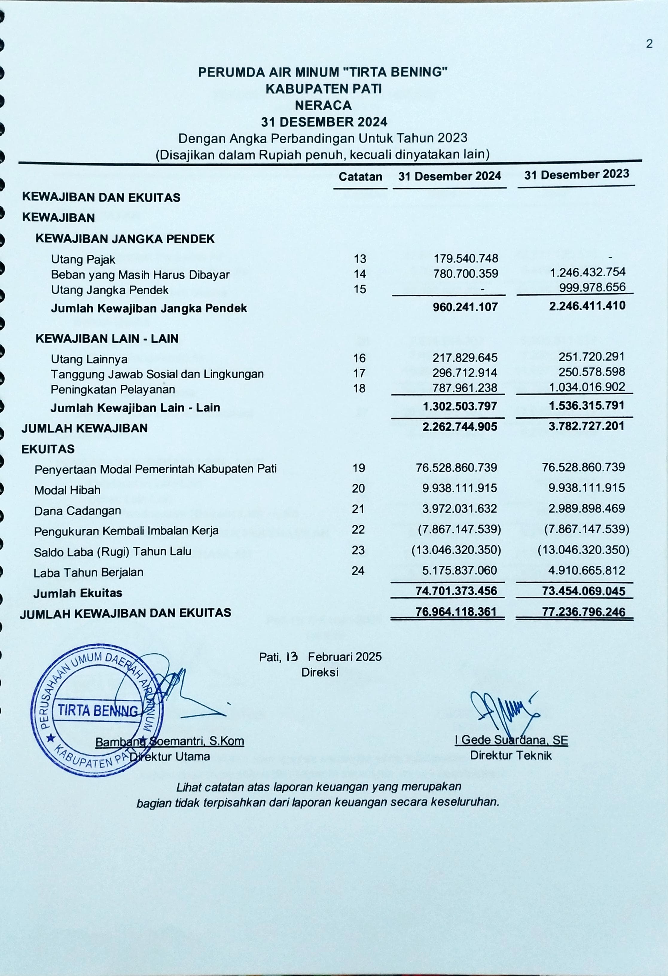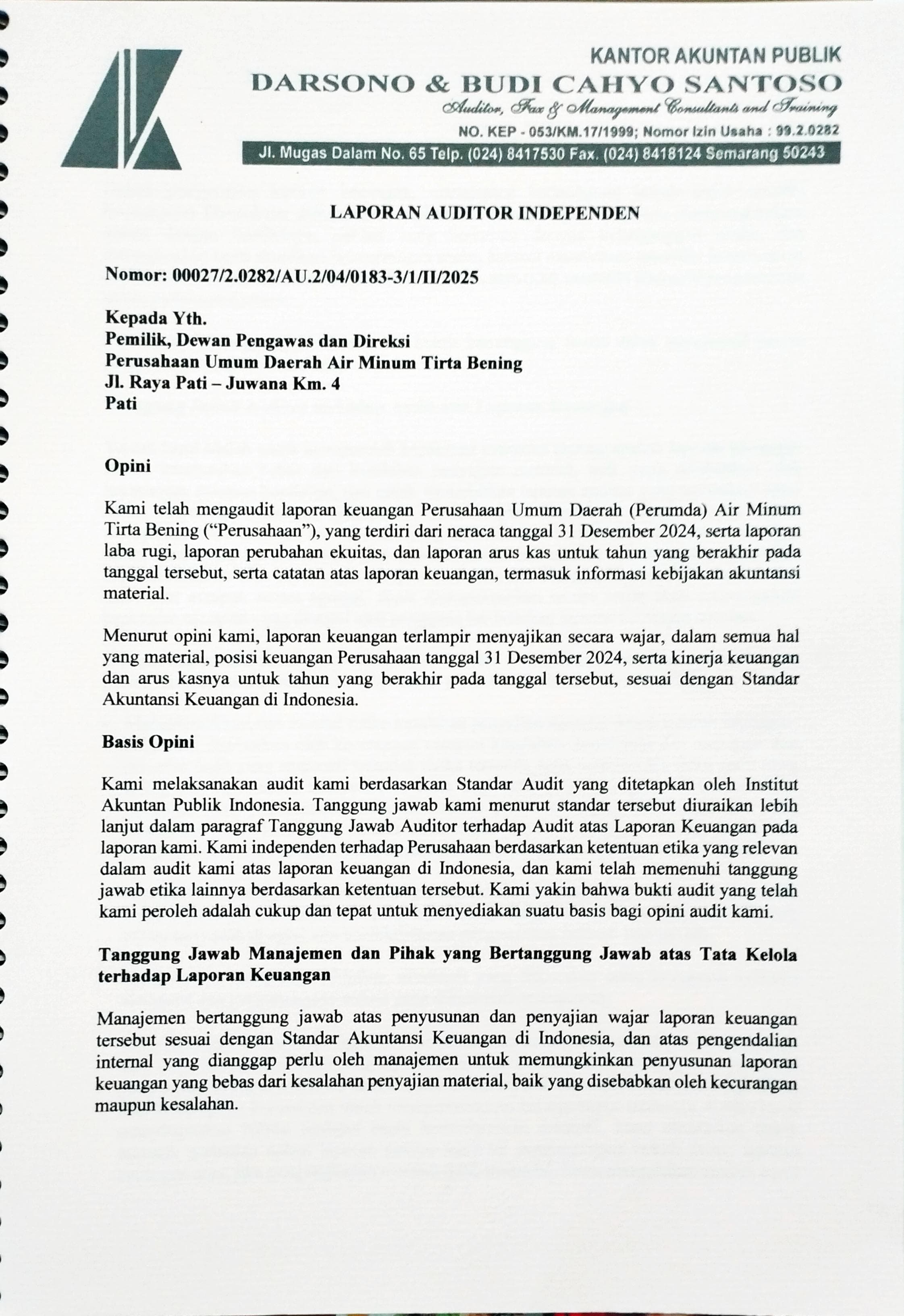 Meningkatkan Pelayanan Air Minum Kepada Masyarakat Pelanggan, Kesejahteraan Pegawai dan Kontribusi Kepada Pemerintah Kabupaten Pati